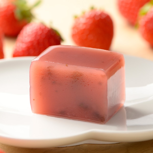 冬季限定商品 2月1日~3月上旬限定販売 いちごの風味とつぶつぶの食感の羊羹です。